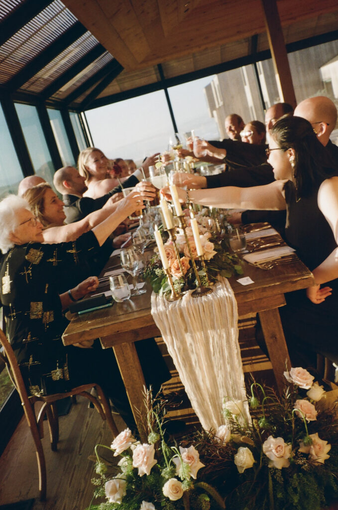 Kristen and Will decided to keep everything on-site. Ceremony overlooking the ocean, followed by dinner inside the lodge, with good company, connection, and a location that felt completely their own.